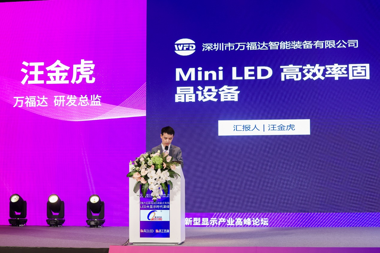 7月8日下午,萬福達(dá)研發(fā)總監(jiān)汪金虎發(fā)表了主題為《Mini LED 高效率固晶設(shè)備》的精彩演講。汪總表示“根據(jù)權(quán)威媒體的預(yù)測(cè),在未來5年內(nèi), Mini LED的產(chǎn)品增長(zhǎng)非常迅速,趨勢(shì)也非常明確,對(duì)比傳統(tǒng)液晶顯示,Mini LED背光能在更小的混光距離內(nèi)實(shí)現(xiàn)更好的亮度均勻性,且采用局部調(diào)光設(shè)計(jì),其擁有更精細(xì)的分區(qū),并大幅提升液晶顯示的對(duì)比度。對(duì)比Micro LED,Mini LED背光更具價(jià)格優(yōu)勢(shì)。對(duì)比OLED顯示,Mini LED背光更容易實(shí)現(xiàn)量產(chǎn)。實(shí)現(xiàn)量產(chǎn)計(jì)劃,Mini LED 高效率固晶設(shè)備尤為重要。”針對(duì)Mini LED增量的市場(chǎng),萬福達(dá)推出了背光、直顯、全自動(dòng)生產(chǎn)線三大系列固晶產(chǎn)品。為了提高Mini LED封裝行業(yè)產(chǎn)能,我們還帶來了當(dāng)前行業(yè)最高實(shí)測(cè)產(chǎn)能200K+的RGB固晶機(jī)WFD8916A,為整個(gè)產(chǎn)業(yè)鏈的發(fā)展貢獻(xiàn)出強(qiáng)大的力量!